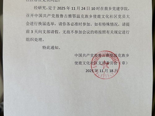 - 2025-11-18关于召开中国共产党敖鲁古雅鄂温克族乡使鹿文化社区党员大会的…