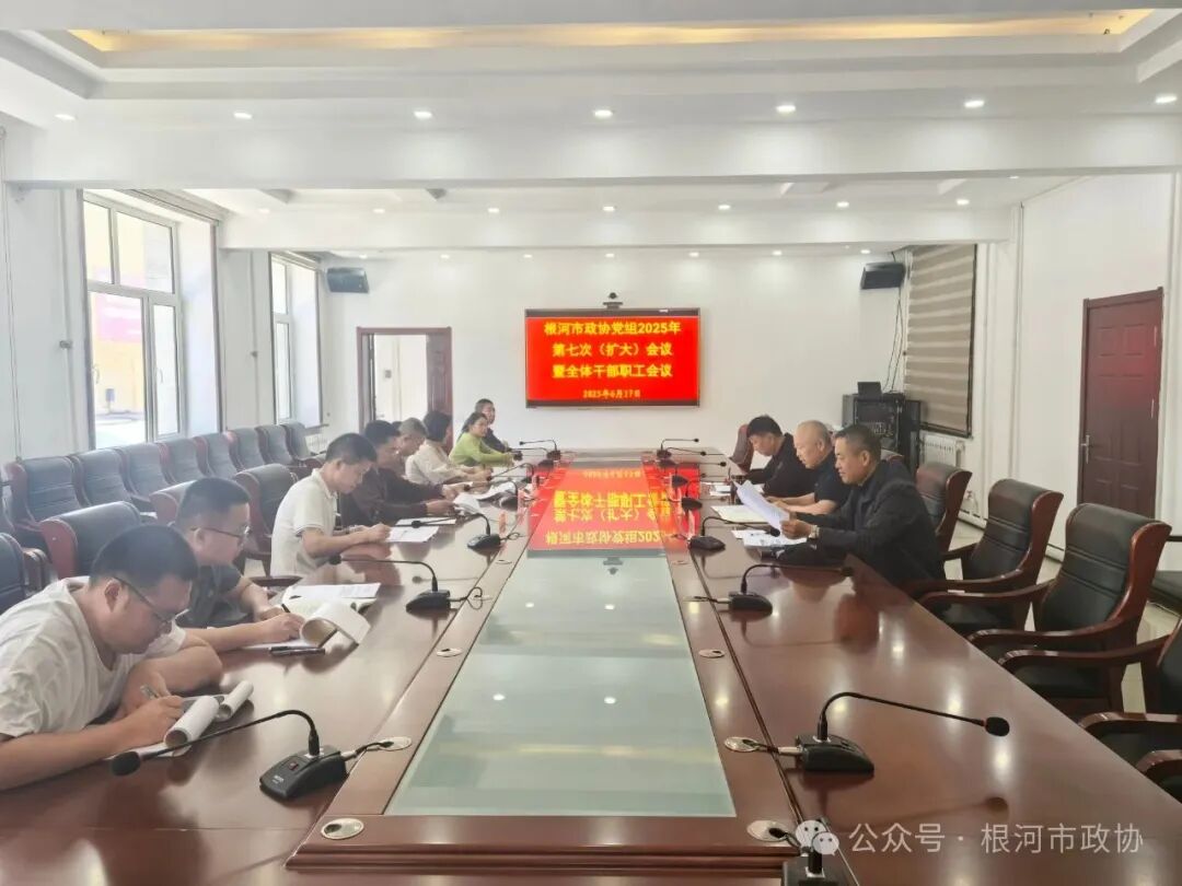 6月17日,根河市政协党组召开2025年第七次(扩大)会议暨全体干部职工会议,市政协党组书记、主席莫新柱主持会议并讲话。