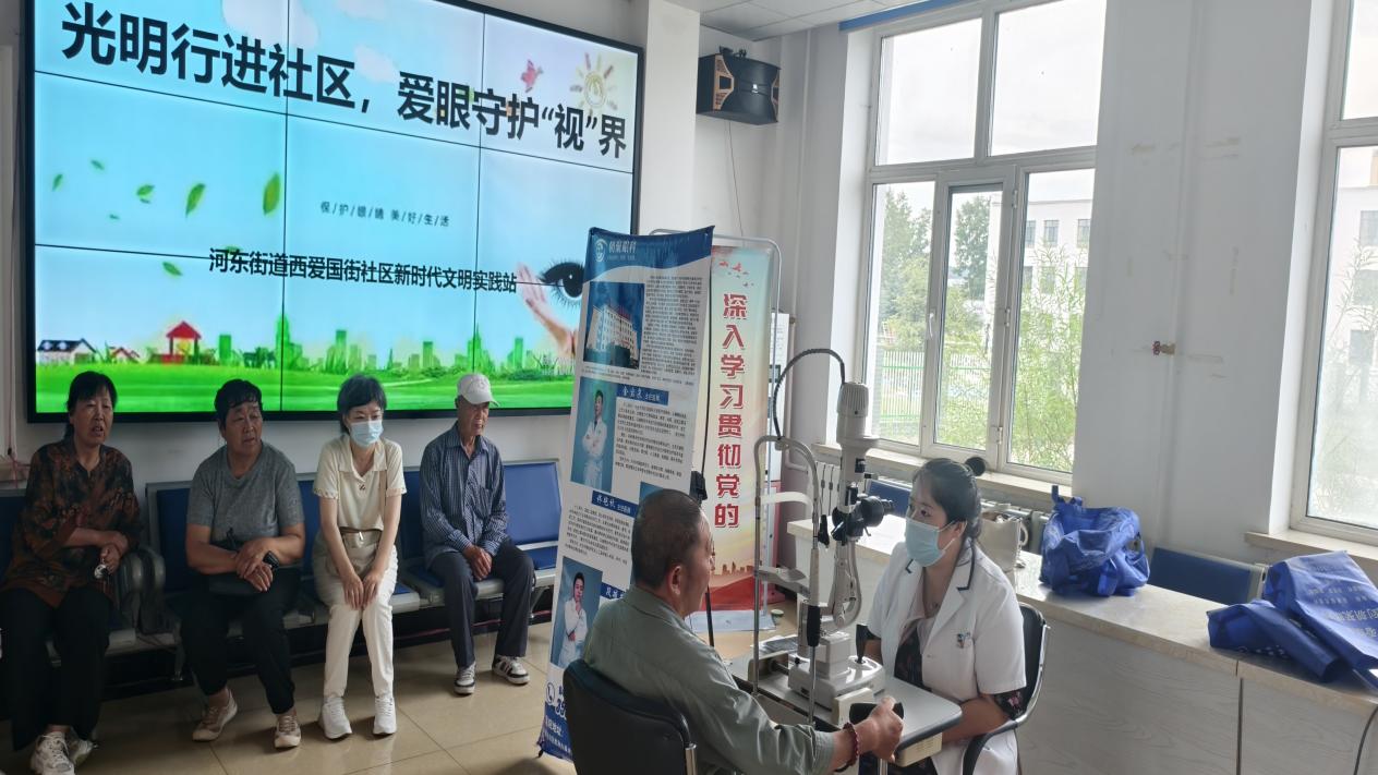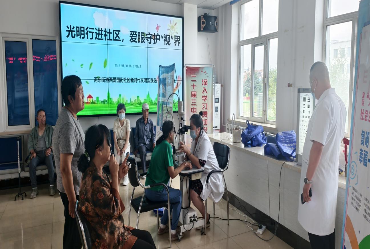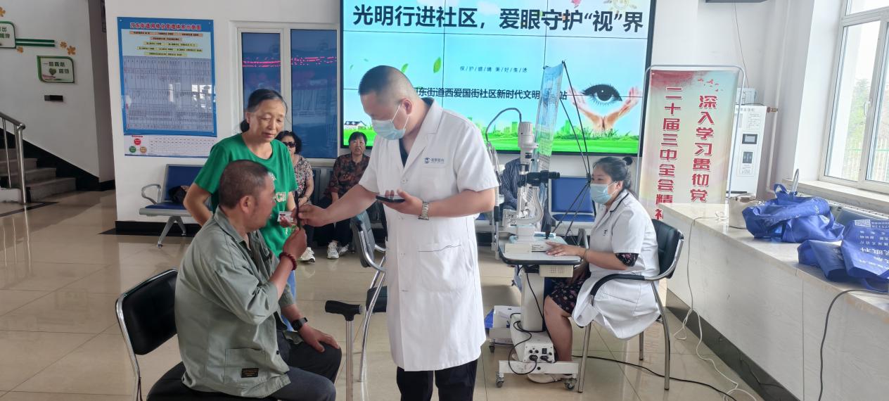 "光明行进社区,爱心守护‘视’界"——西爱国街社区新时代文明实践站联合呼伦贝尔朝聚眼科医院开展白内障筛查公益活动