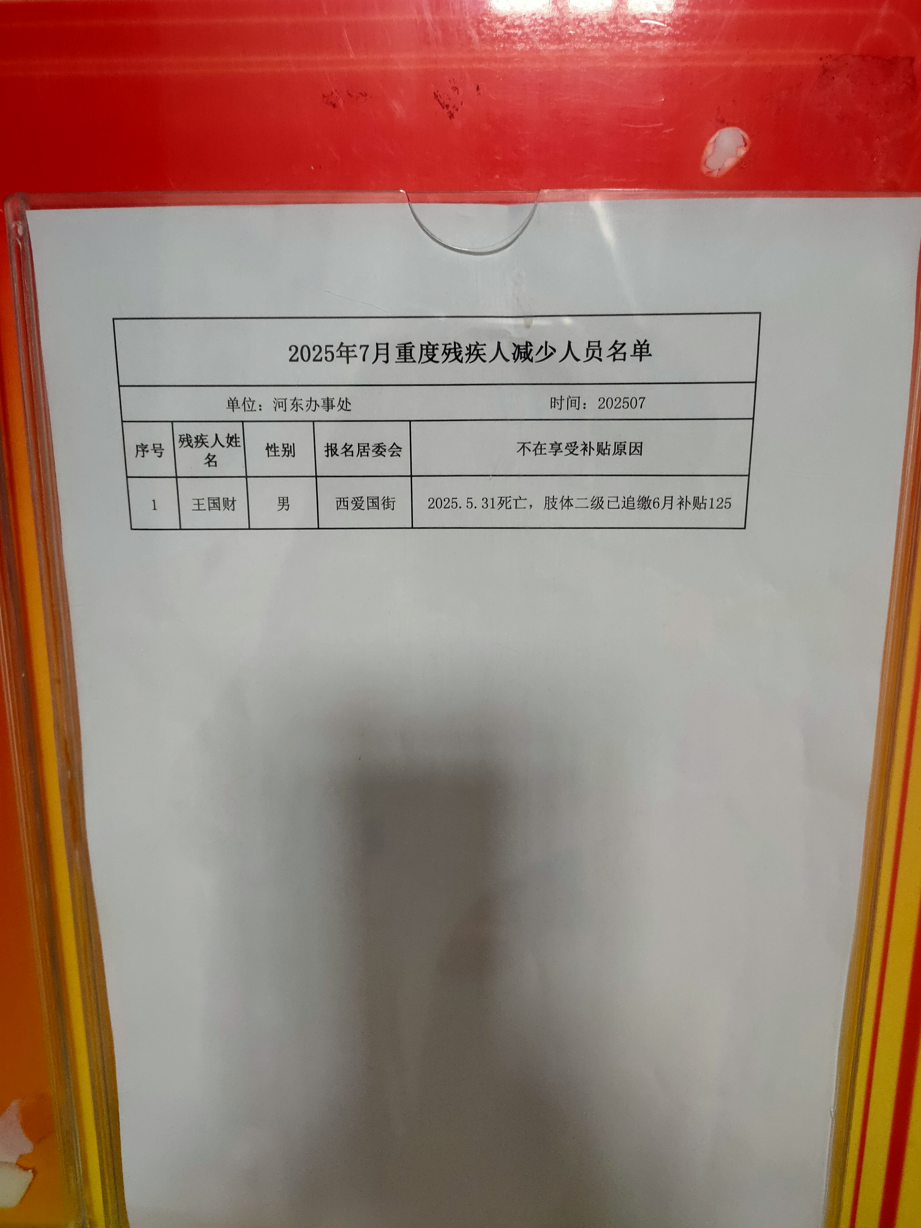 2025年7月重度残疾人减少人员名单