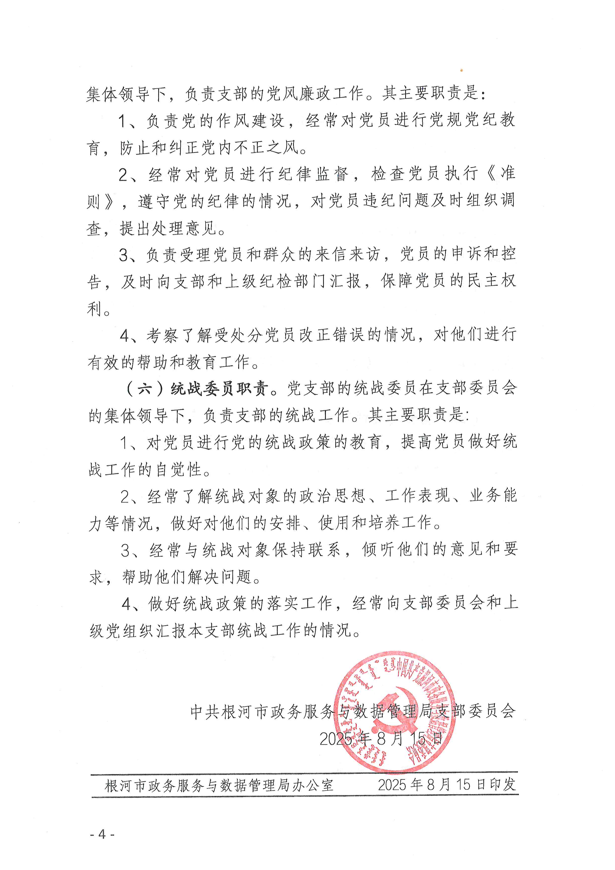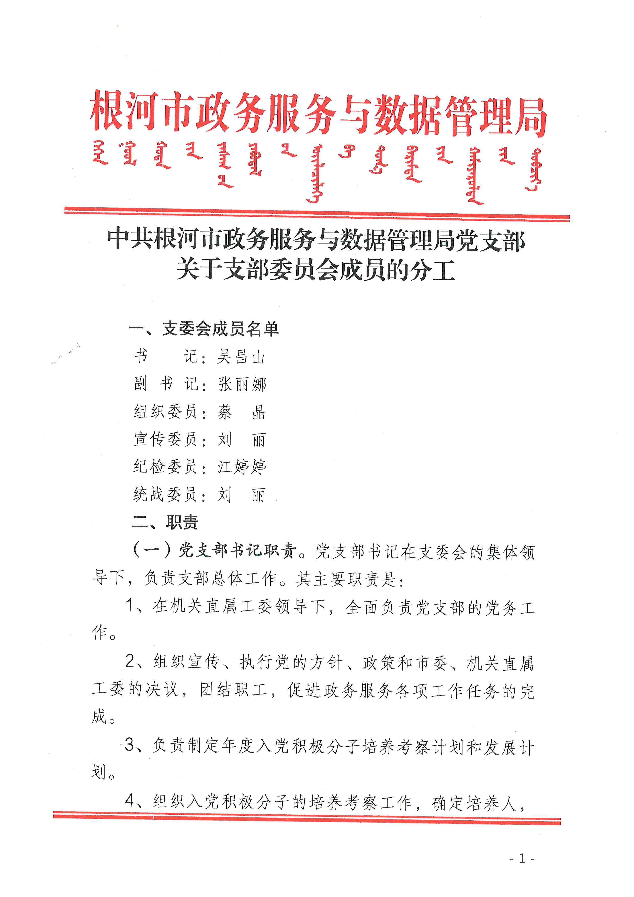 中共根河市政务服务与数据管理局党支部关于支部委员会成员的分工