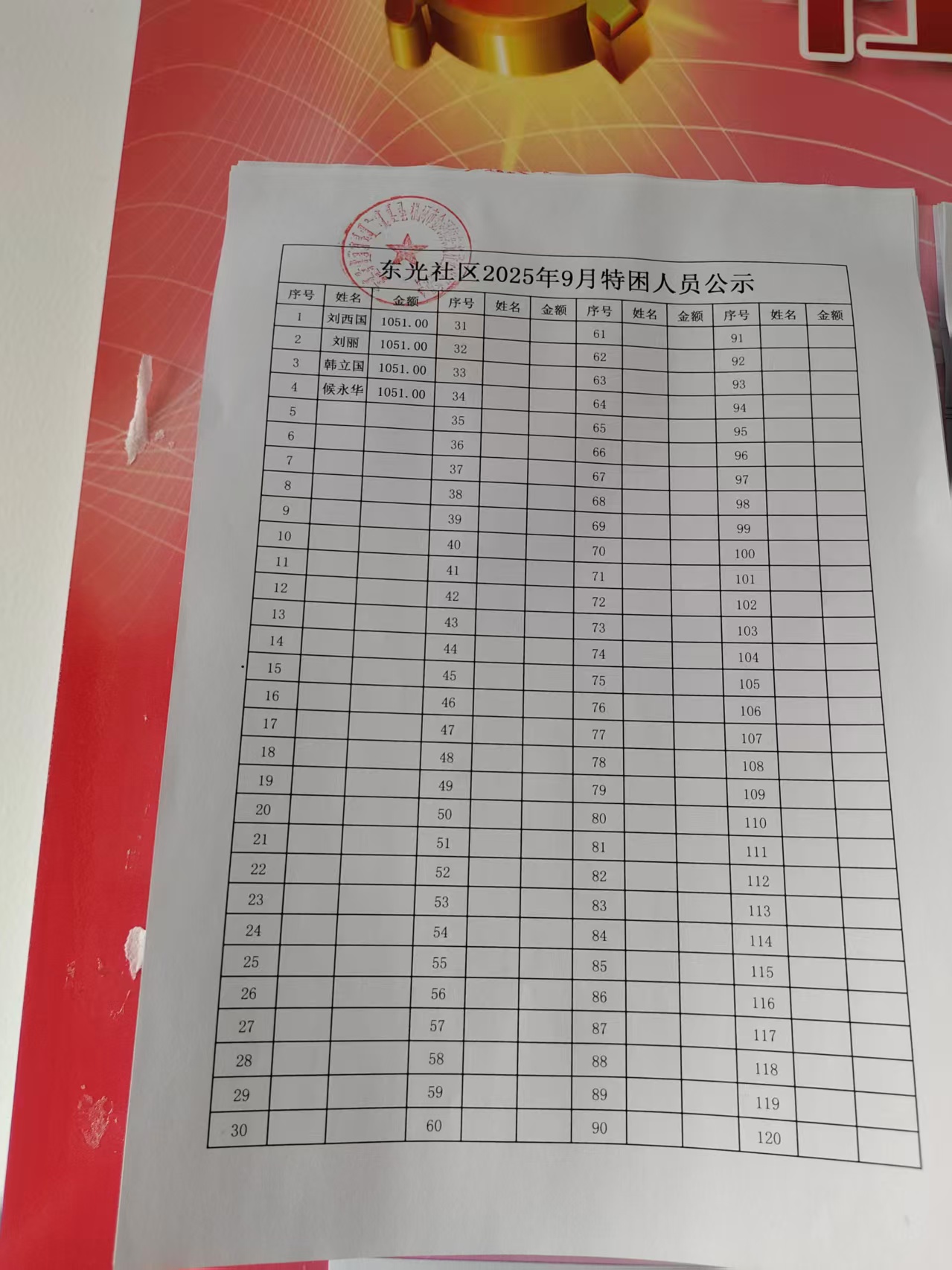 东光社区2025年10月重度残疾人护理补贴和困难残疾人生活补贴公示
