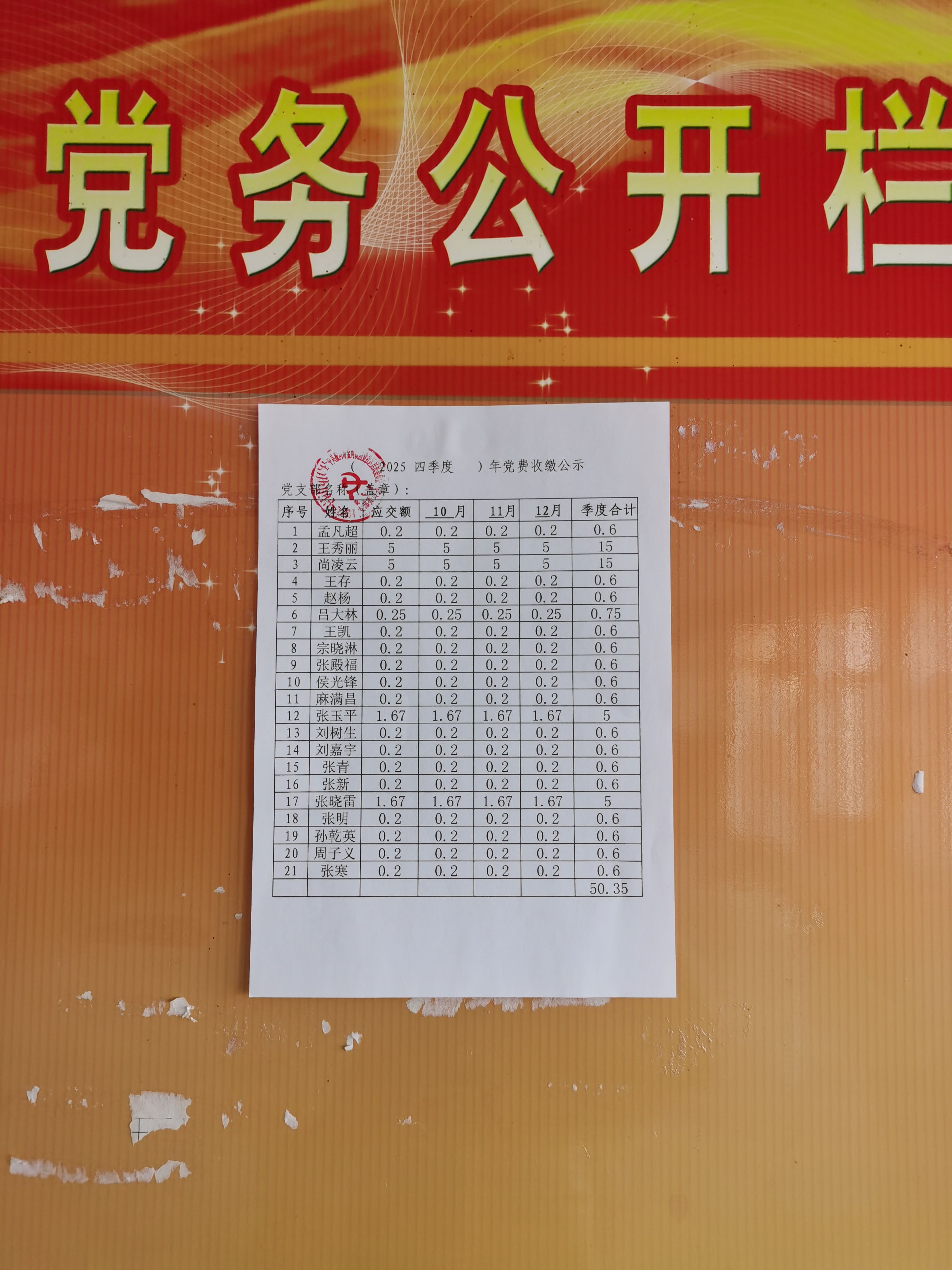 金河镇创业社区2025年第四季度离退休党费收缴公示