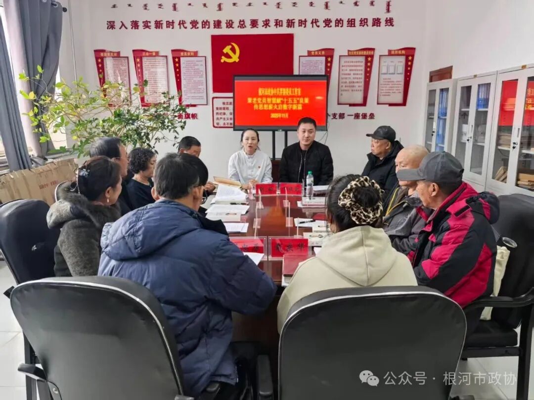 为充分发挥政协委员桥梁纽带作用,广泛听取老党员对根河市“十五五”规划编制的意见建议,近日,中共界别政协委员工作室主任刘璐、副主任牛晓勤,特邀界别委员侯颖慧,共同与10位老党员在河西街道政协委员工作室举行专题协商座谈。