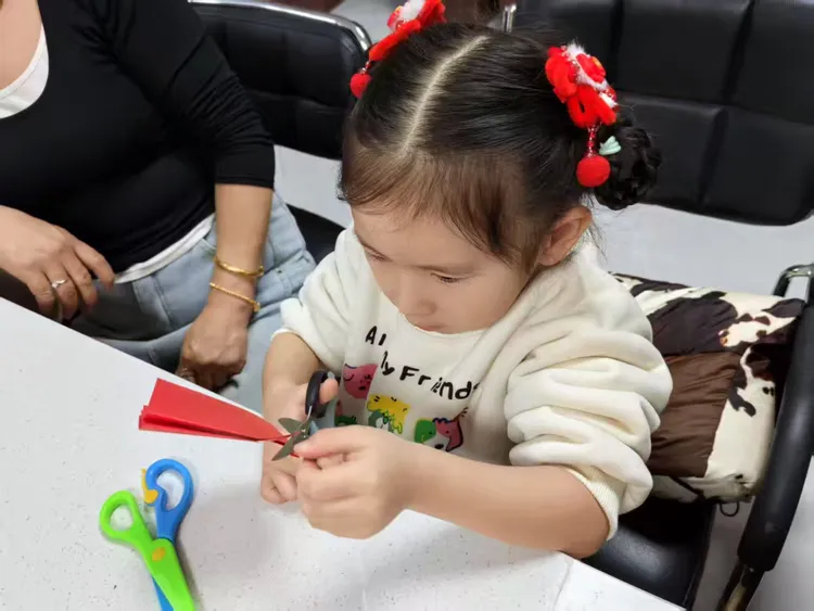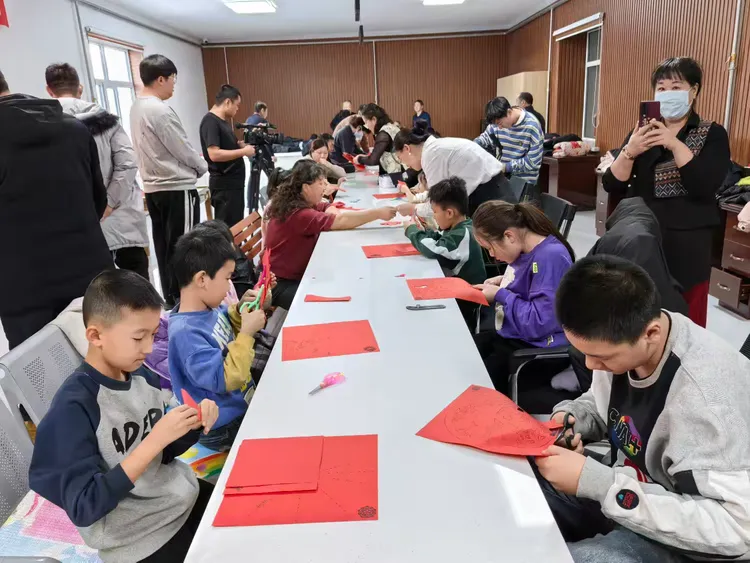 一张张红纸、一把把剪刀在小朋友们手中不断翻转开合,用灵巧的双手,把原本普普通通的一张红纸,变成了一幅幅艺术作品,组成了活动现场最靓丽的风景。