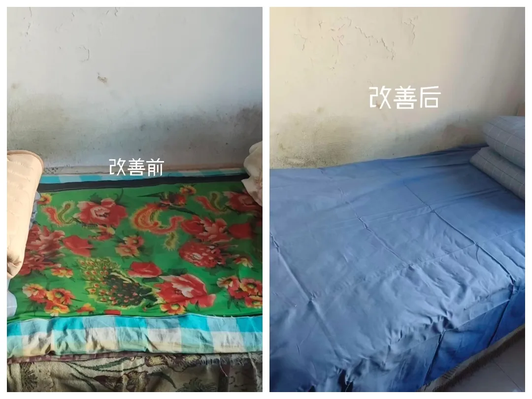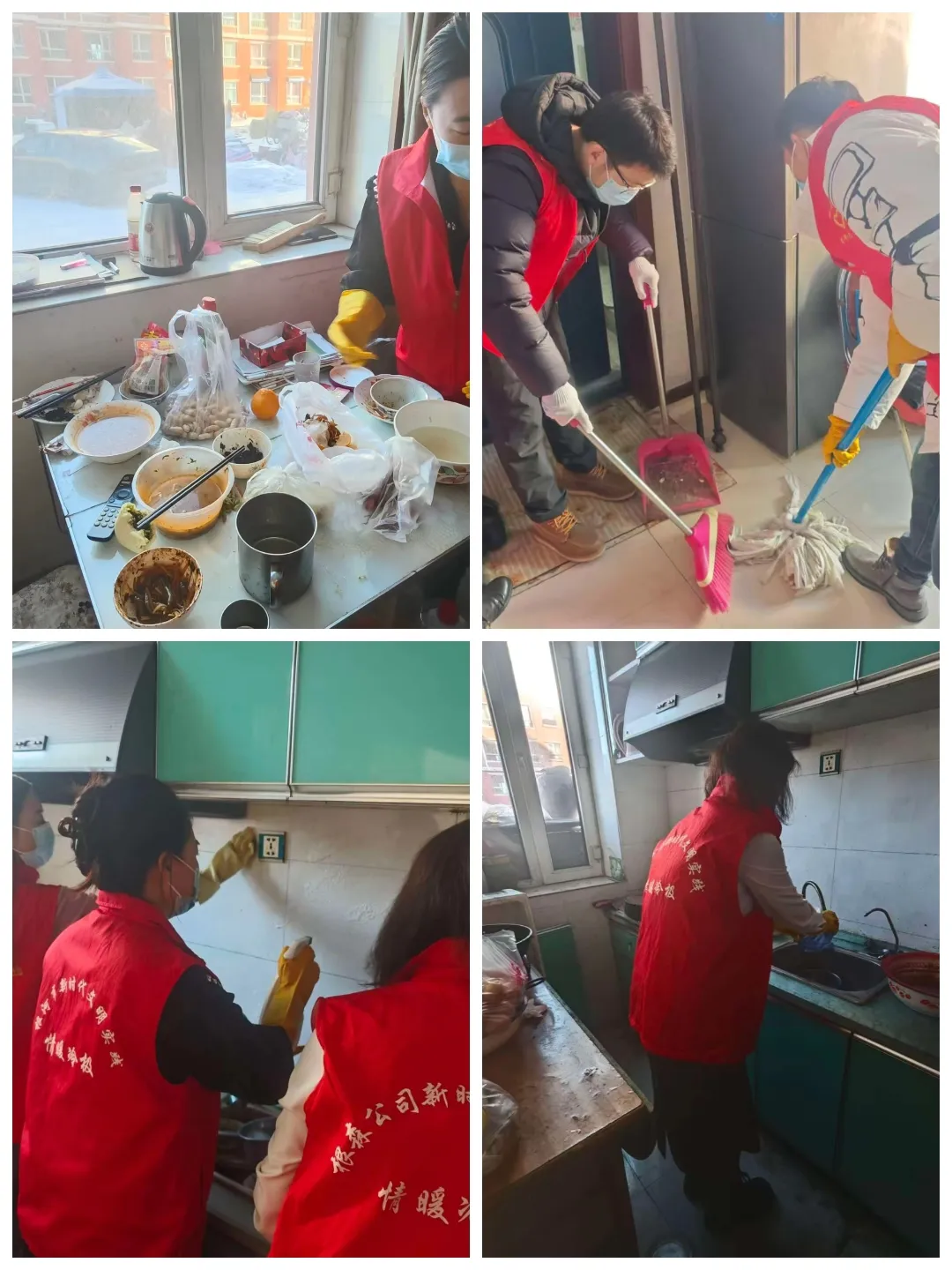 活动当天,社区工作人员与应急事务中心机关党支部志愿者组成慰问小组,一同前往困难群众家中开展帮扶。慰问小组不仅为群众送上崭新的保暖棉被,鸡蛋等御寒物资和生活必需品,志愿者们亲手为困难群众铺好新棉被,细心叮嘱注意冬季防寒保暖,保重身体。随后,大家分工协作,志愿者们拿起扫帚、抹布等清洁工具,对群众家中的厨房、地面、家具进行全面清扫,清理堆积杂物,将原本杂乱的房间整理得干净整洁、焕然一新,有效改善了群众的居住环境。