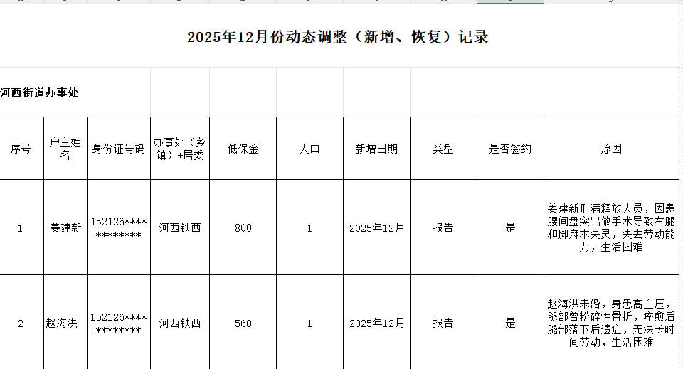 2025年12月低保动态