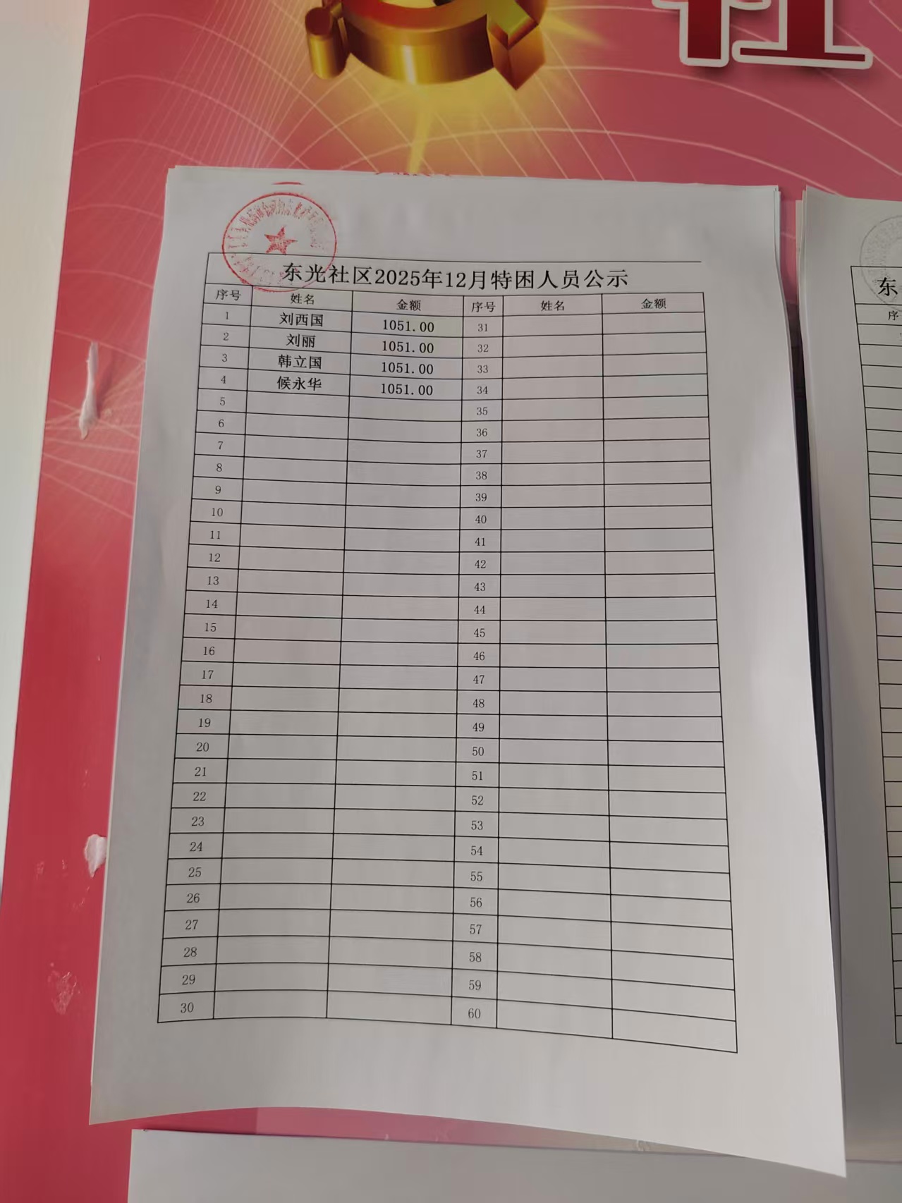 东光社区2025年11月重度残疾人补贴及困难残疾补贴公示