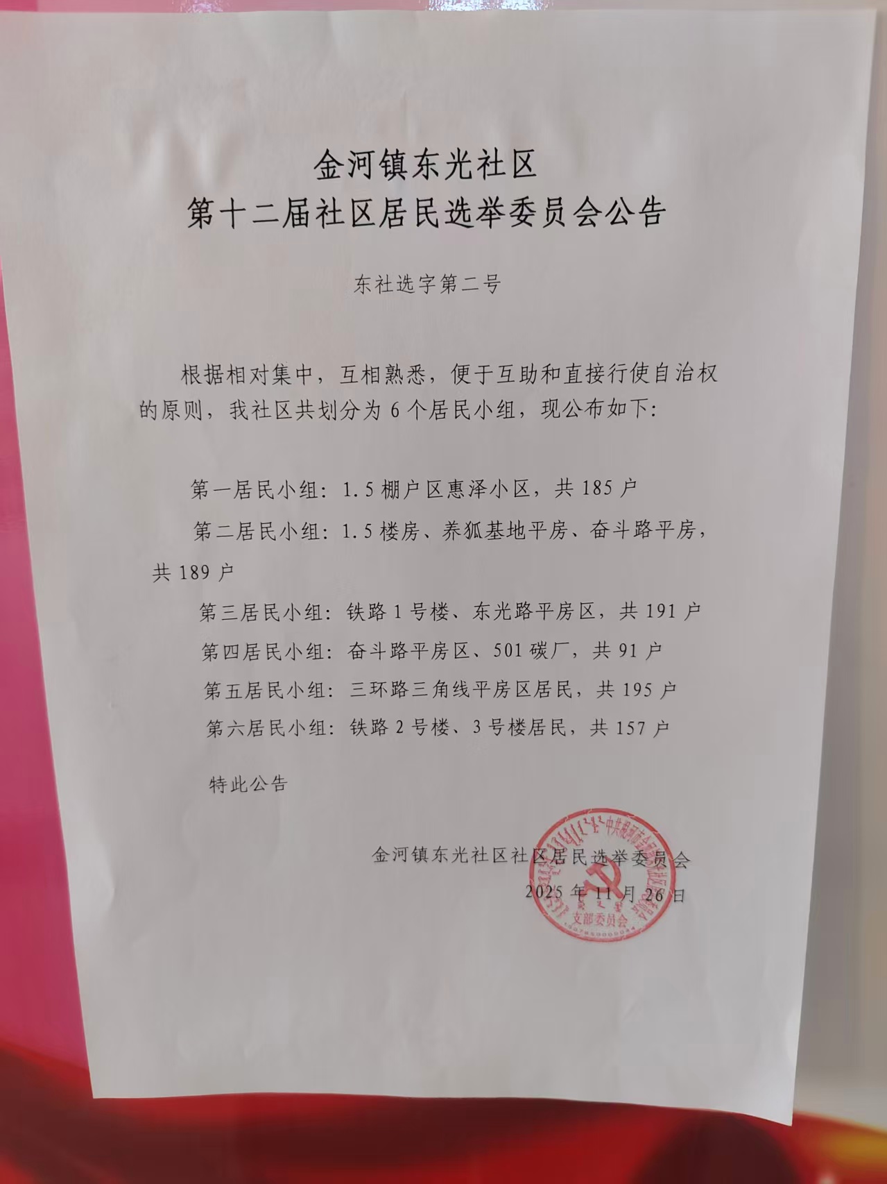 金河镇东光社区第十二届社区居民选举委员会公告(东社选字 第二号)