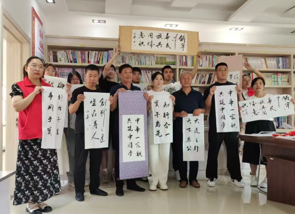 为学习贯彻党的二十届三中全会精神,践行推动文化繁荣,切实做好中华优秀传统文化的传承,丰富辖区青年群众精神文化生活。8月13日,根河市文联组织书法协会会员代表,走进林电社区开展“习语金句大家写,中华民族一家亲”主题实践活动,齐聚社区草原书屋,感悟习语精神,共享书法魅力。
