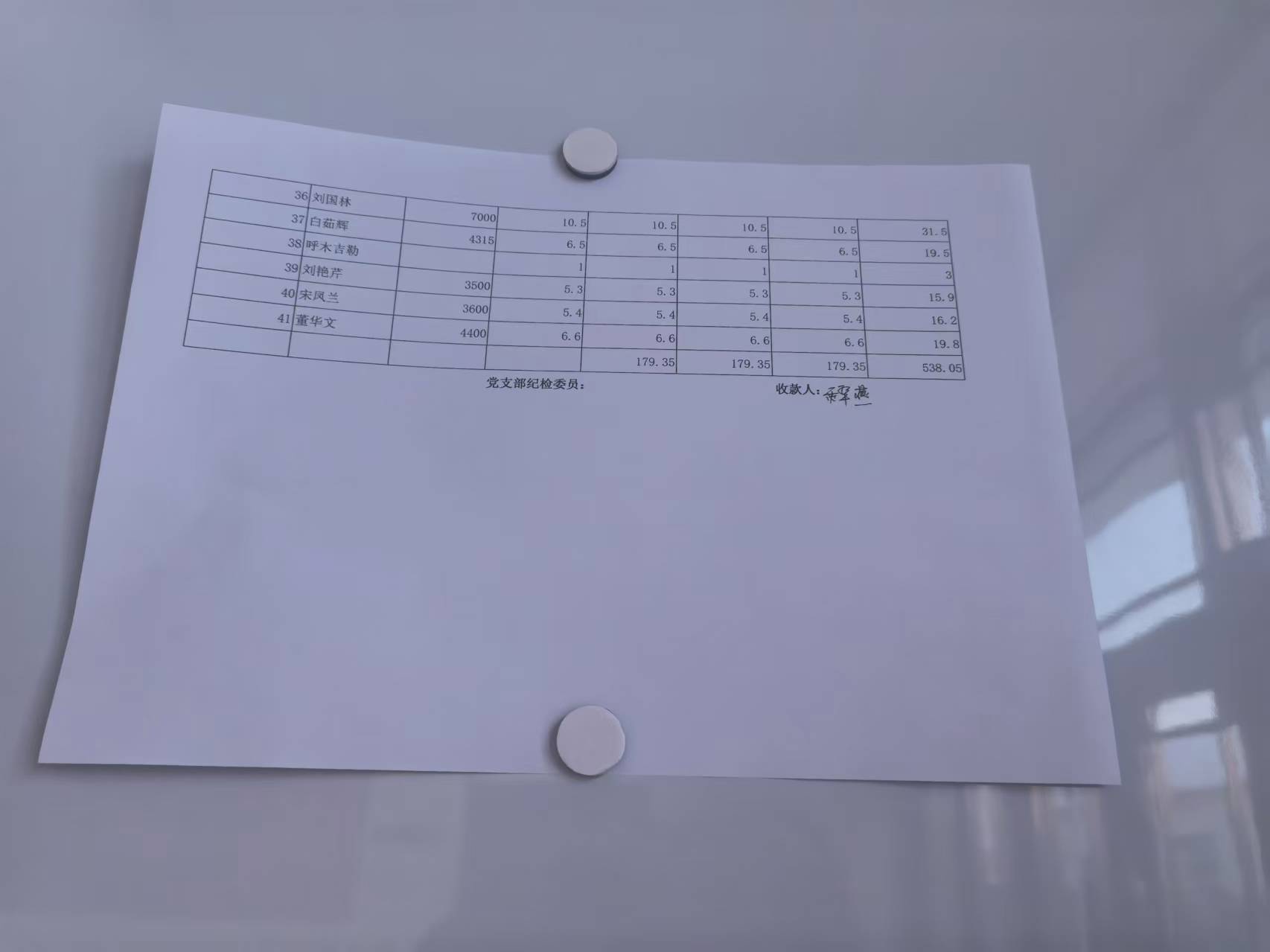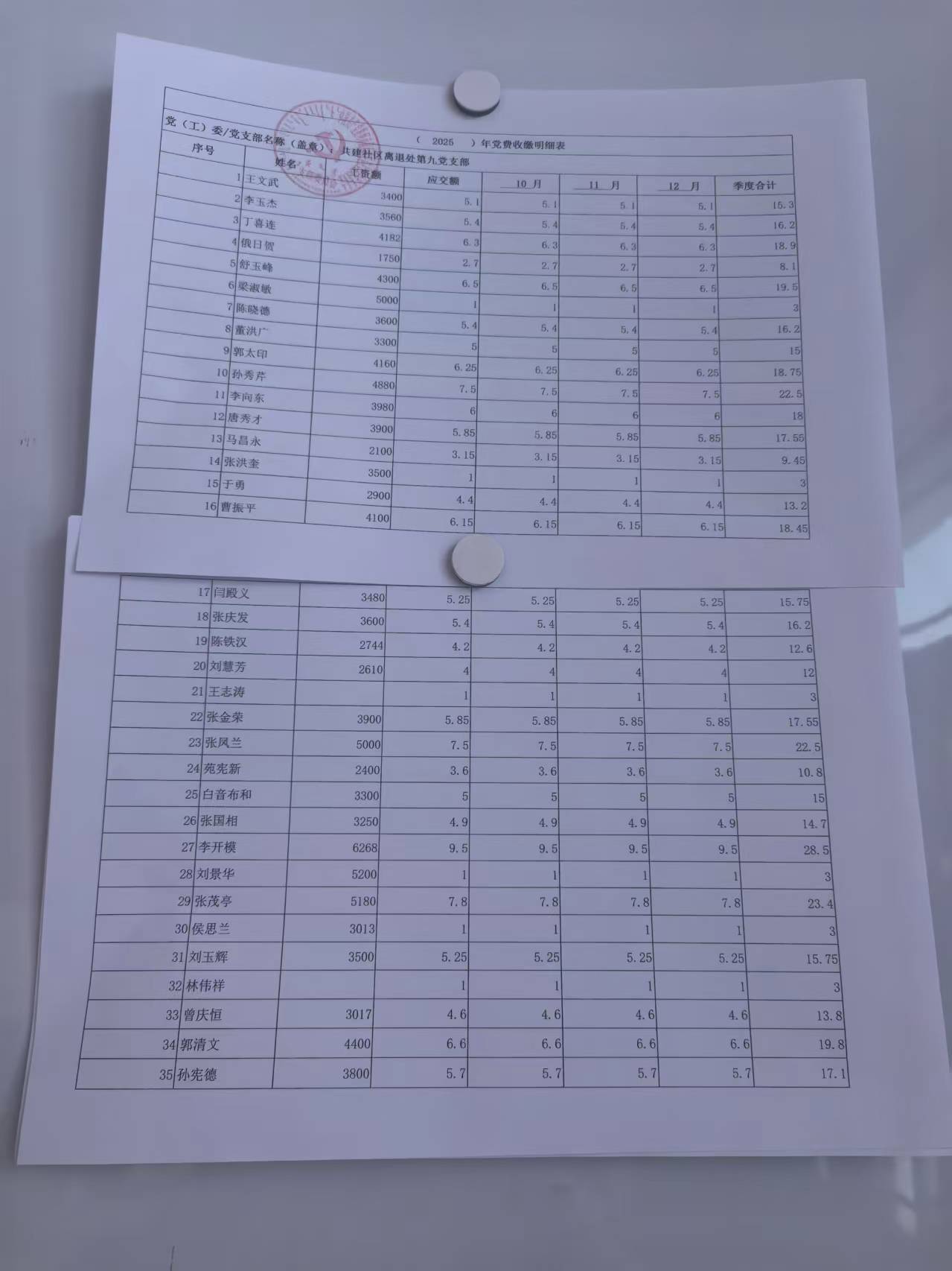 离退休第九党支部第四季度党费明细